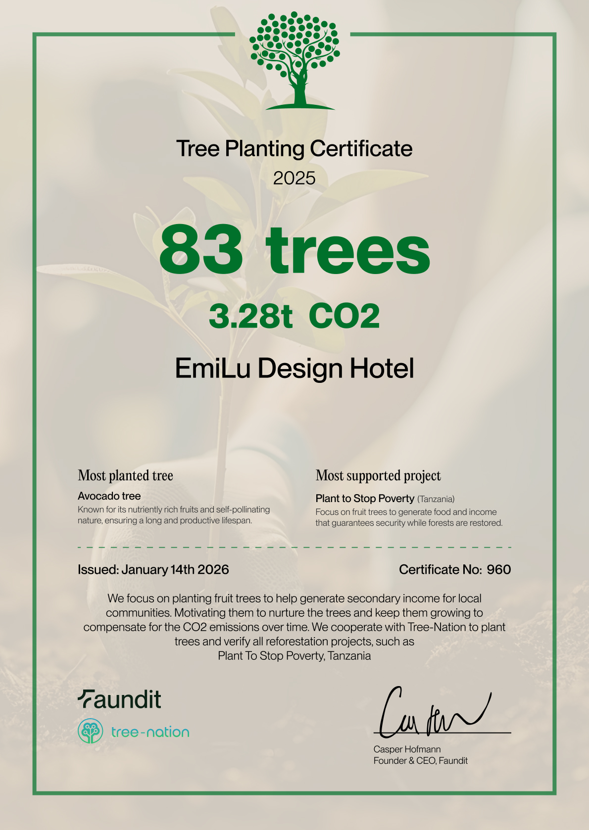 Unser Ziel ist es, dass sich jeder Gast bei uns willkommen, inspiriert und wie zu Hause fühlt. EmiLu möchte Ihr „Home away from home“ sein.